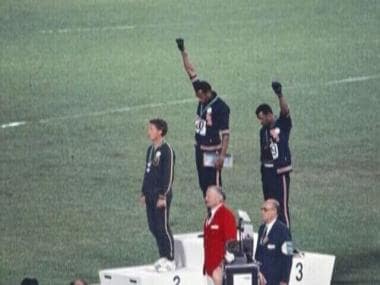 African American athletes John Carlos and Tommy Smith doing the black salute during medals ceremony at the 1968 Olympics in Mexico. Image: Wikimedia Commons