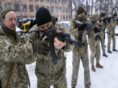 File image of members of Ukraine’s Territorial Defense Forces, volunteer military units of the Armed Forces train, in Kharkiv, Ukraine. AP