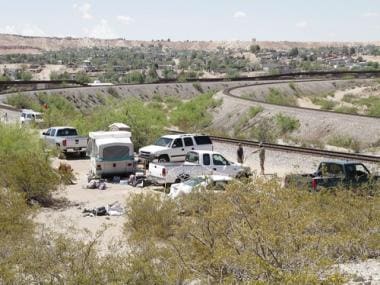 FILE – The camp of the United Constitutional Patriots, a citizen immigration patrol, sits near the U.S-Mexico border.AP File