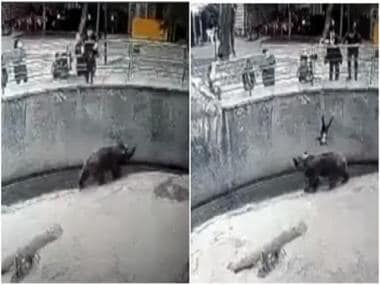 The 45-second clip of the incident was taken from CCTV footage of the zoo. The video shows the mother dangling her child over the railing of the enclosure. As the bear- called Zuzu – approaches the area, the mother drops her three-year-old into the enclosure, to the shock of the visitors in the viewing area. The girl falls into a trench 16-feet below the railing.