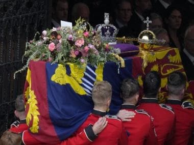 Earlier in the day, the state funeral began as chimes of the Big Ben fell silent and hymns rang out as the coffin of the late monarch was carried into Westminster Abbey on Monday morning.