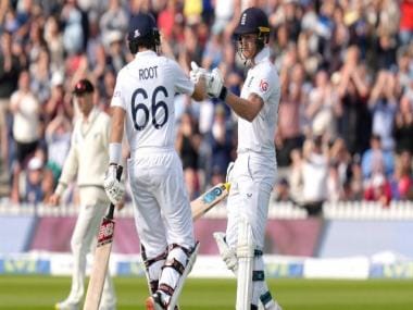 Stokes eventually had 50 and while his partnership with Root stretched towards three figures things seemed to be going almost unnervingly well for England – it was not a position they would enjoy for long, the skipper’s Bizarro World innings meeting a suitably funky end, gloving Kyle Jamieson through to keeper as he attempted to uppercut it over the cordon.
