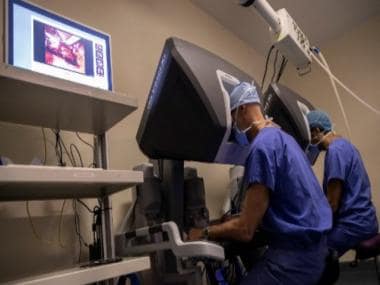 Representational image of two doctors conducting robotic surgery. AFP