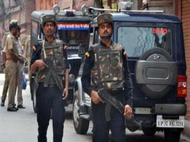 Police personnel stand guard at the Kashi Vishwanath Temple-Gyanvapi Mosque complex as its court-mandated videography survey is completed on Monday – ANI