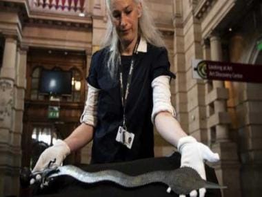 A ceremonial Indo-Persian sword is displayed during a transfer of ownership ceremony at Kelvingrove Art Gallery and Museum in Glasgow. AFP