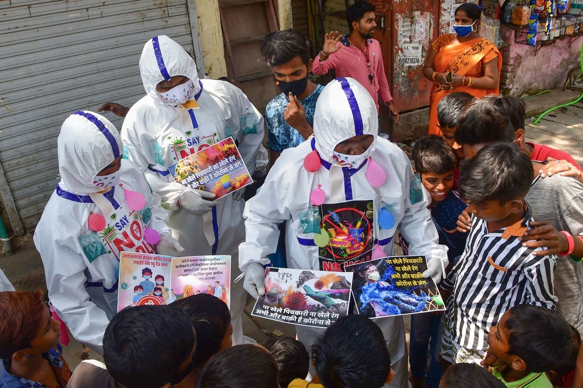 Despite the restrictions, revellers still gathered in neighbourhoods across the country, banging drums and hurling coloured powder at each other.