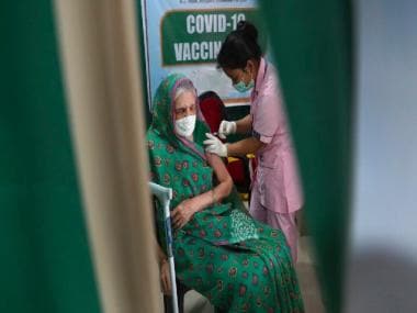 A woman being administered COVID-19 vaccine at a health centre. AP File