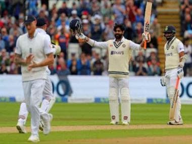 The next one was a touch back of the length from Potts, wide of the off stump and Jadeja dispatched the ball for a boundary through the off side to bring up a well-deserved century. The left-hander’s knock had been about patience, resolute batting and some fine stroke-play.