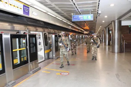 Social distancing at the metro stations is not being followed due to huge crowding.