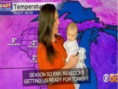 The meteorologist identified as Rebecca Schuld, 42, from Milwaukee, Wisconsin, works for CBS 58 News. She recently surprised her live audience by holding her three-month-old daughter, Fiona, in her arms while delivering the weather forecast.