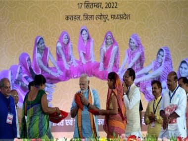 PM Modi participates in the Women Self Help Group Sammelan, organised at Karahal, Sheopur, in Madhya Pradesh on 17 September, 2022. pib.gov.in