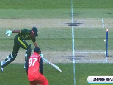 Babar Azam is run out through a direct hit during Pakistan vs Netherlands T20 World Cup match in Perth on Sunday. Screenshot/Hotstar