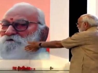Prime Minister Narendra Modi pays tributes to Nanaji Deshmukh. Screengrab from Twitter)