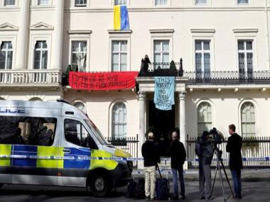 Protesters occupy oligarch’s London mansion: How the anger against Russia is spreading to the UK