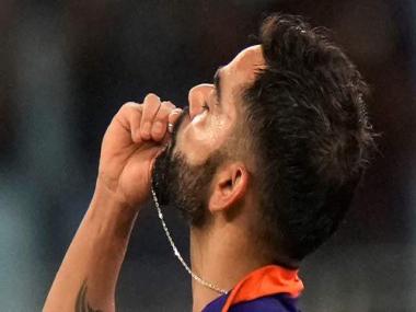 After the swashbuckling century, Kohli animated a special celebration as he kissed his wedding ring while lifting up his bat.