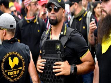 Enrique Tarrio (centre), the then leader of Proud Boys is one among the five accused who will face trial. Source: Twitter