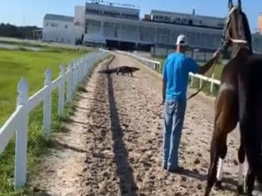 Watch: Alligator crosses racetrack, leaves horse scared; see viral video here