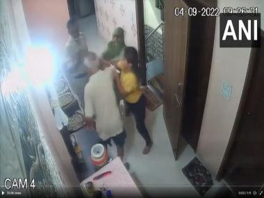 Delhi: A female Sub-Inspector was seen slapping her father-in-law in police presence in Laxmi Nagar area on 4 September, 2022.