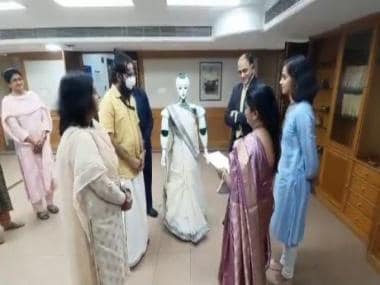 The robot can be seen greeting all of them and then addressing them. The video shows the robot moving its hands while addressing the people. It begins by saying “Hi” to all. It even says that he is very happy to meet them all and thanked the bank for providing the company with the “financial assistance”.