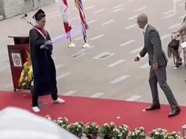 A graduation ceremony is a very proud moment, both for the students and the teachers. This special moment was made even more special by a ‘Star Wars’ fan. A video has been posted on Twitter in which a student can be seen having a brief duel with his principal using his lightsaber as he collects his diploma. The 18-year-old has really completed his graduation in a unique way. The video was tweeted with the caption, “The Force was strong with this one. 18-year-old Hunter Wark-Pantoja surprised his principal with a lightsaber at his graduation ceremony — and the two even had a brief duel as he collected his diploma!”.