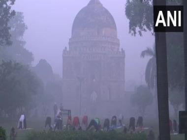 Thick layer of smog, haze seen at Lodhi Garden in Delhi on Saturday morning. ANI