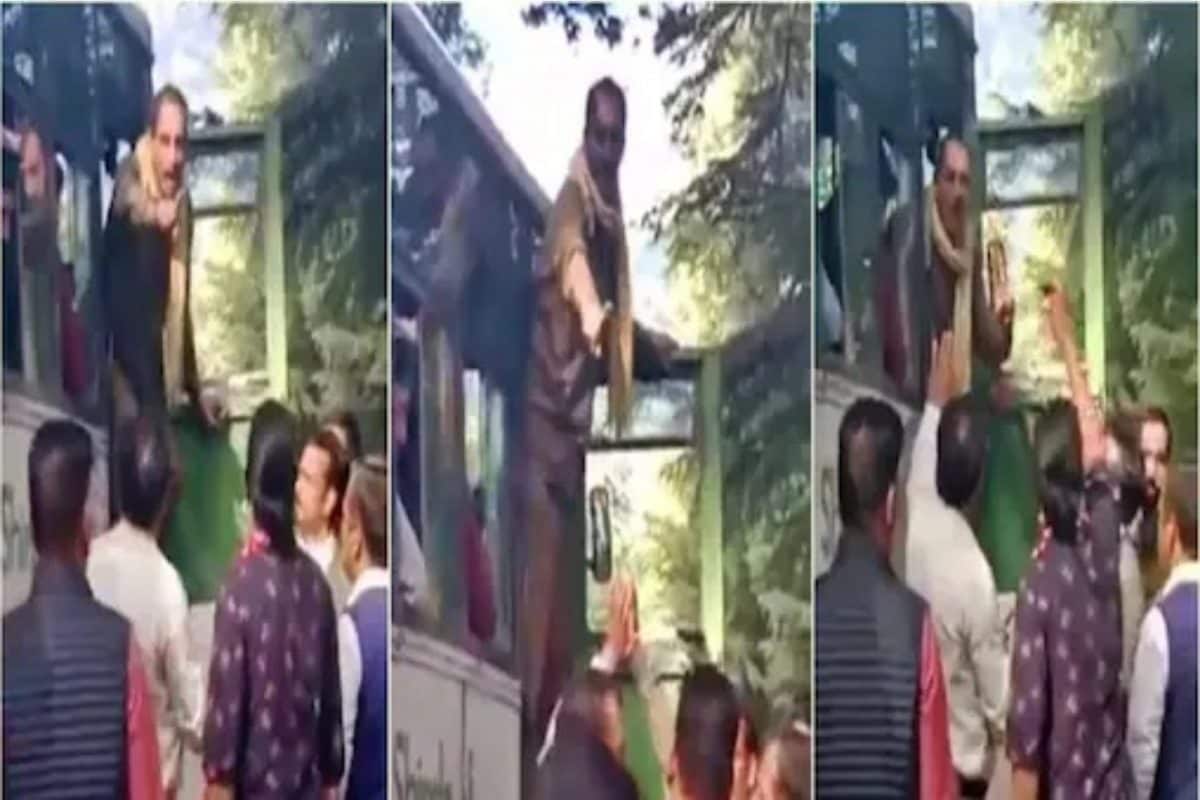The incident was captured on camera and the driver was also seen venting his frustration at the woman.