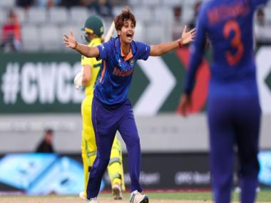 Meghna Singh of India appeals during the 2022 ICC Women’s Cricket World Cup match between India and Australia at Eden Park on March 19, 2022 in Auckland, New Zealand. ICC Media Zone